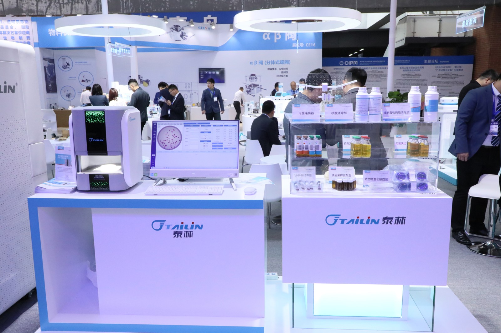 本次CIPM,泰林生物攜帶無(wú)菌藥品研發(fā)生產(chǎn)和質(zhì)量控制解決方案、數(shù)智化微生物實(shí)驗(yàn)室解決方案、微生物檢測(cè)解決方案、總有機(jī)碳(TOC)檢測(cè)解決方案等各具特色的解決方案亮相。同時(shí),還展出了全自動(dòng)無(wú)菌檢查培養(yǎng)系統(tǒng)、汽化過(guò)氧化氫消毒機(jī)、負(fù)壓隔離器、放射性藥品生產(chǎn)線熱室、總有機(jī)碳分析儀、NC轉(zhuǎn)印膜等自主研發(fā)產(chǎn)品,吸引了眾多嘉賓和行業(yè)專家駐足交流。